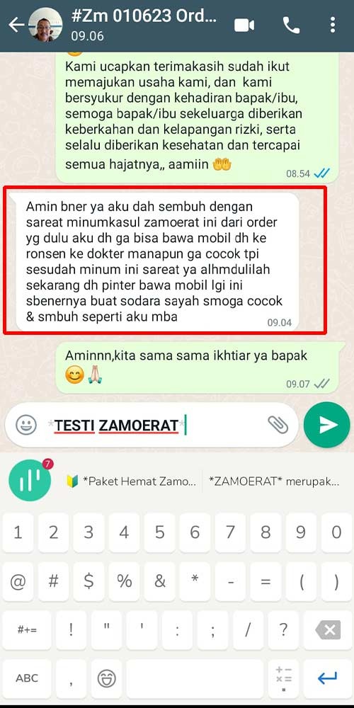 ZAMOERAT BERIKAN BUKTI BUKAN JANJI, KONSUMEN KAMI SEMBUH DALAM 3-7 HARI KONSUMSI